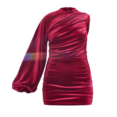 Modely Solid Lantern Sleeve Belted Shirt Dress