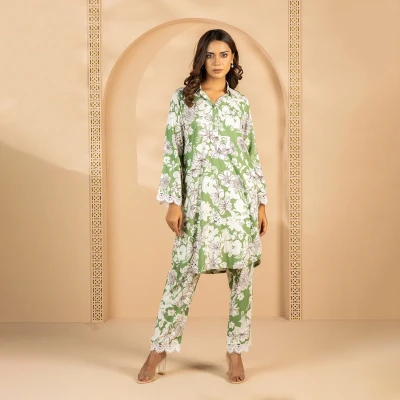 Modely Solid Lantern Sleeve Belted Shirt Dress